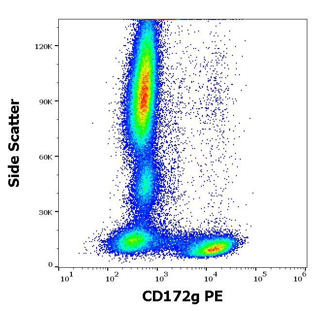 Flow cytometry surface staining pattern of human peripheral whole blood stained using anti-human CD172g (OX-119) PE antibody (10 μl reagent / 100 μl of peripheral whole blood).