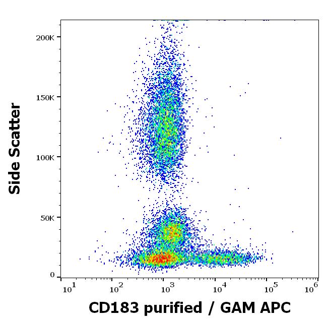 Flow cytometry surface staining pattern of human peripheral whole blood stained using anti-human CD183 (rHIQB005) purified antibody (concentration in sample 5 μg/ml, GAM APC).