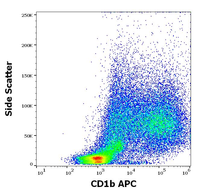 Flow cytometry surface staining pattern of human stimulated (GM-CSF + IL-4) peripheral blood mononuclear cells stained using anti-human CD1b (SN13) APC antibody (10 μl reagent per milion cells in 100 μl of cell suspension).