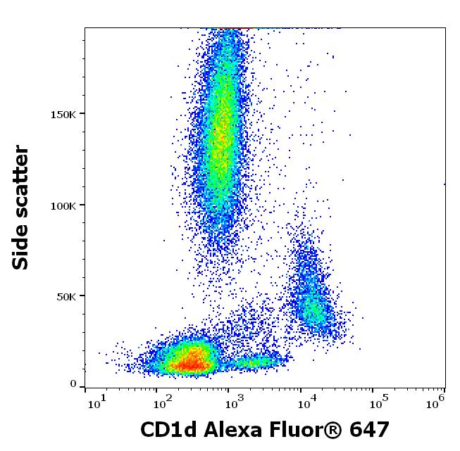 Flow cytometry surface staining pattern of human peripheral whole blood stained using anti-human CD1d (51.1) Alexa Fluor® 647 antibody (4 μl reagent / 100 μl of peripheral whole blood).