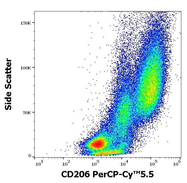 Flow cytometry surface staining pattern of human stimulated (GM-CSF + IL-4) peripheral blood mononuclear cells stained using anti-human CD206 (15-2) PerCP-Cy™5.5 antibody (4 μl reagent per milion cells in 100 μl of cell suspension).