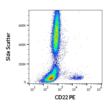 Flow cytometry surface staining pattern of human peripheral whole blood stained using anti-human CD22 (IS7) PE antibody (20 μl reagent / 100 μl of peripheral whole blood).