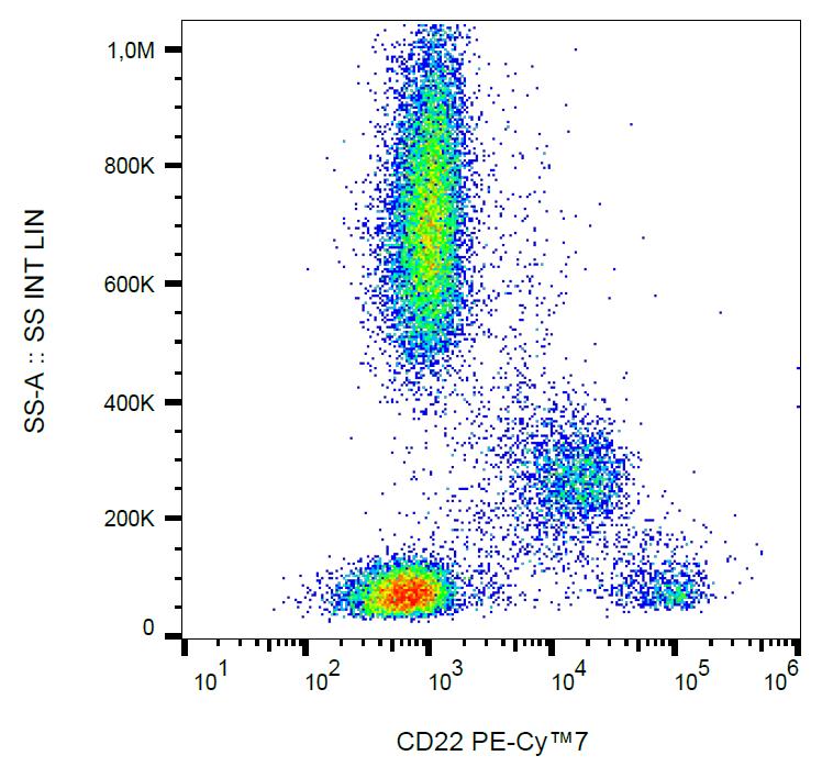 Flow cytometry analysis (surface staining) of CD22 in human peripheral blood with anti-CD22 (S-HCL-1) PE-Cy™7.