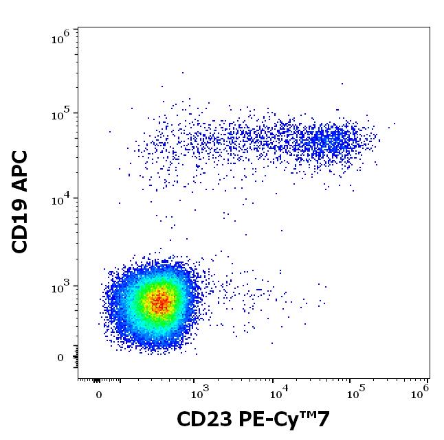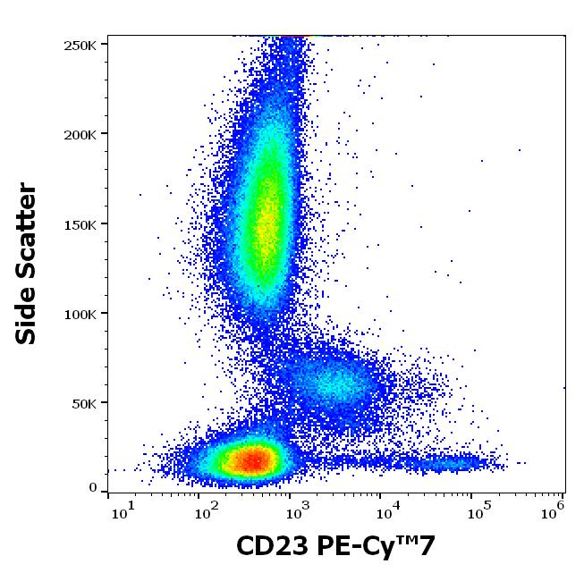 Flow cytometry surface staining pattern of human peripheral whole blood stained using anti-human CD23 (EBVCS-5) PE-Cy™7 antibody (concentration in sample 0.56 μg/ml).