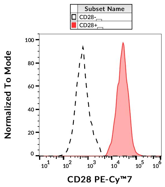 Flow cytometry analysis (surface staining of human peripheral blood leukocytes with anti-human CD28 (CD28.2) PE-Cy™7.
