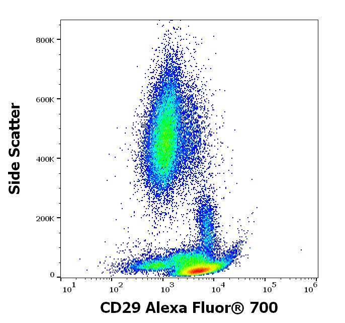 Flow cytometry surface staining pattern of human peripheral whole blood stained using anti-human CD29 (MEM-101A) Alexa Fluor® 700 antibody (4 μl reagent / 100 μl of peripheral whole blood).