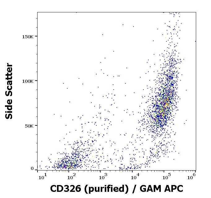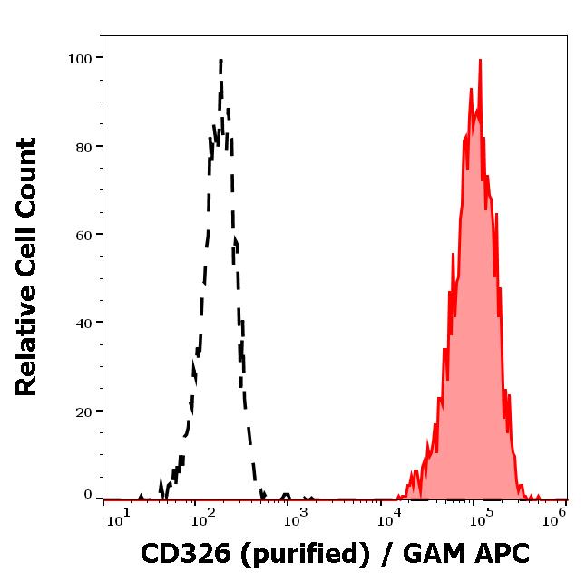 Flow cytometry surface staining pattern of MCF-7 cells stained using anti-human CD326 (VU-1D9) purified antibody (concentration in sample 6 μg/ml) GAM APC.