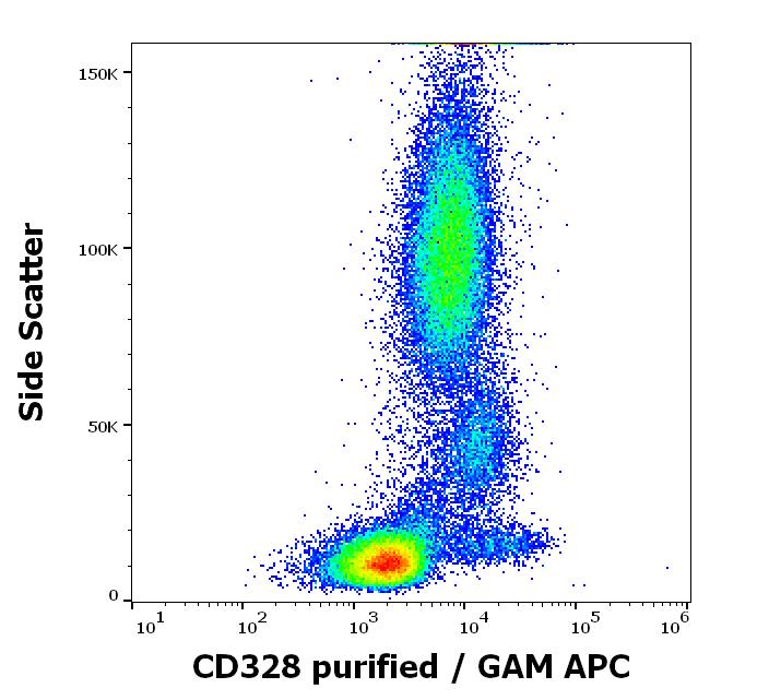 Flow cytometry surface staining pattern of human peripheral whole blood stained using anti-human CD328 (6-434) purified antibody (concentration in sample 3 μg/ml, GAM APC).