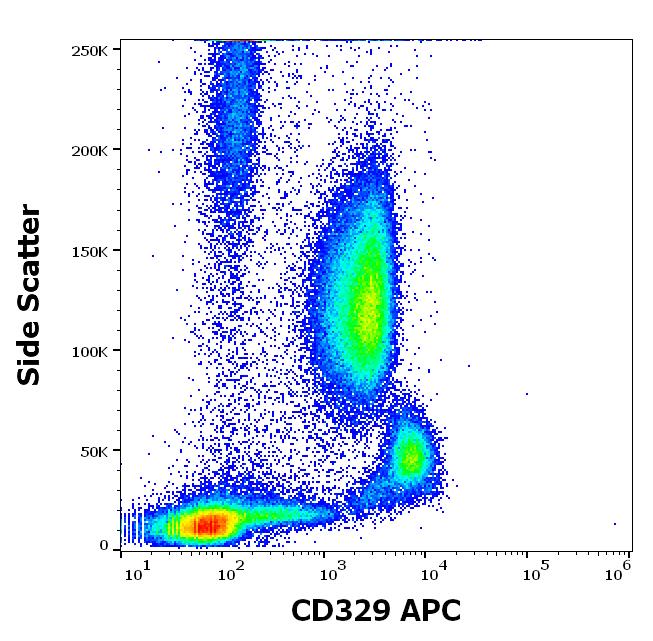 Flow cytometry surface staining pattern of human peripheral whole blood stained using anti-human CD329 (K8) APC antibody (10 μl reagent / 100 μl of peripheral whole blood).