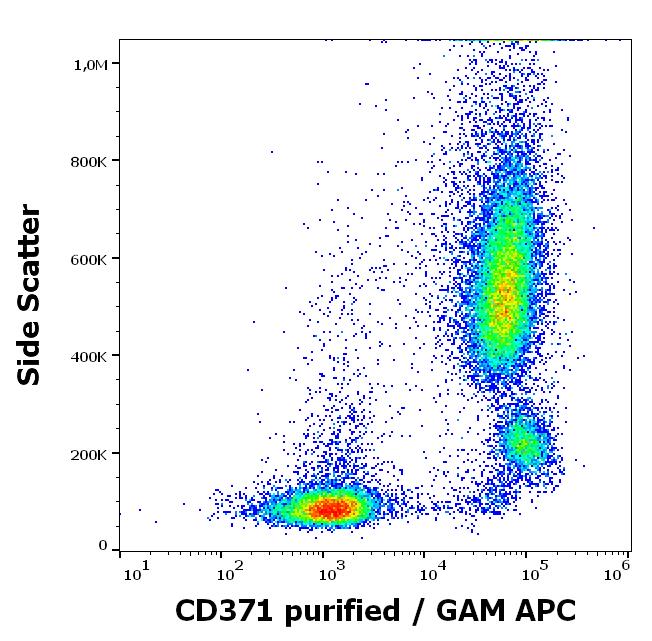 Flow cytometry surface staining pattern of human peripheral whole blood stained using anti-human CD371 (50C1) purified antibody (concentration in sample 1.67 μg/ml, GAM APC).