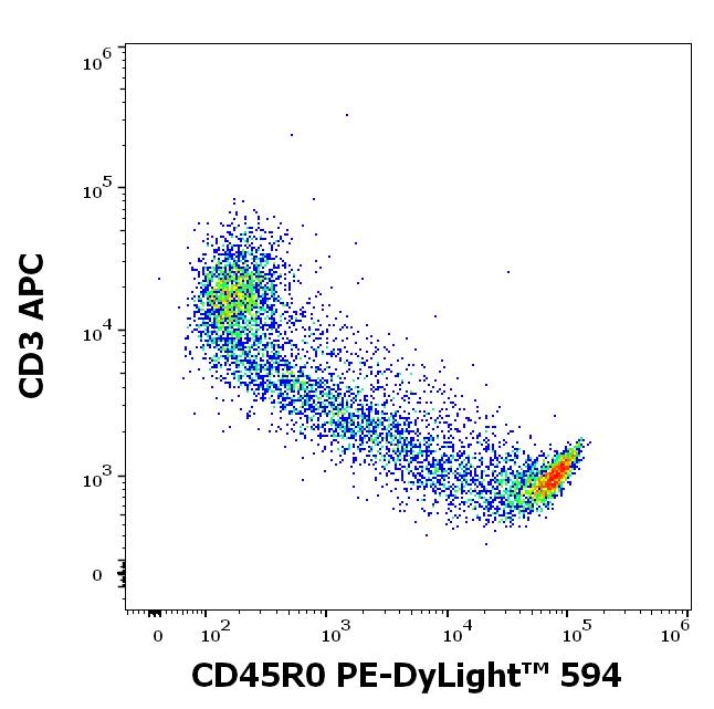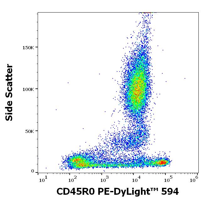 Flow cytometry surface staining pattern of human peripheral whole blood stained using anti-human CD45R0 (UCHL1) PE-DyLight™ 594 antibody (4 μl reagent / 100 μl of peripheral whole blood).
