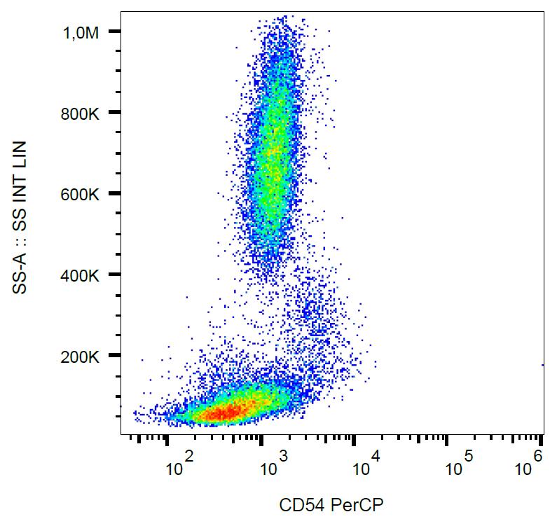 Flow cytometry analysis (surface staining) of human peripheral blood with anti-CD54 (1H4) PerCP.