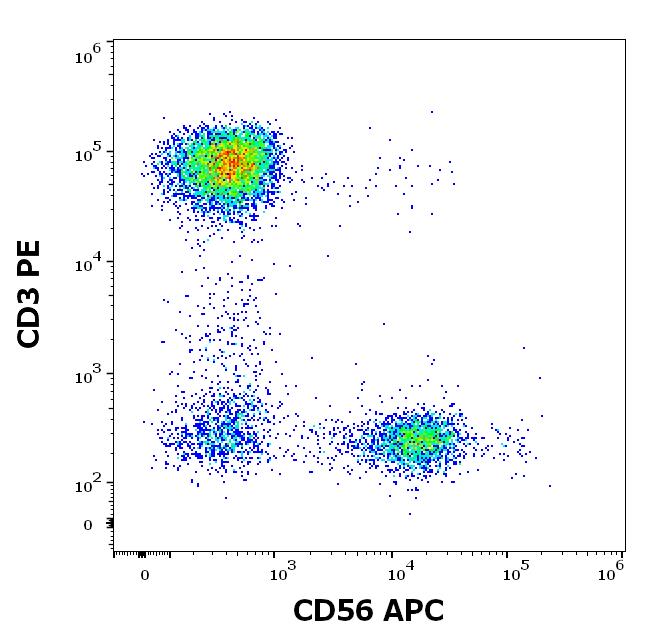 Flow cytometry surface staining pattern of human peripheral whole blood stained using anti-human CD56 (LT56) APC antibody (concentration in sample 0.11 μg/ml).