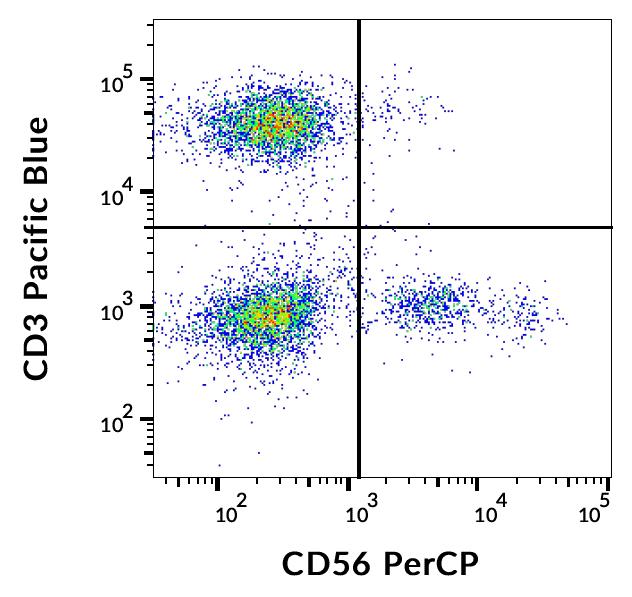 Flow cytometry analysis (surface staining) of human peripheral blood lymphocytes with anti-CD56 (MEM-188) PerCP.