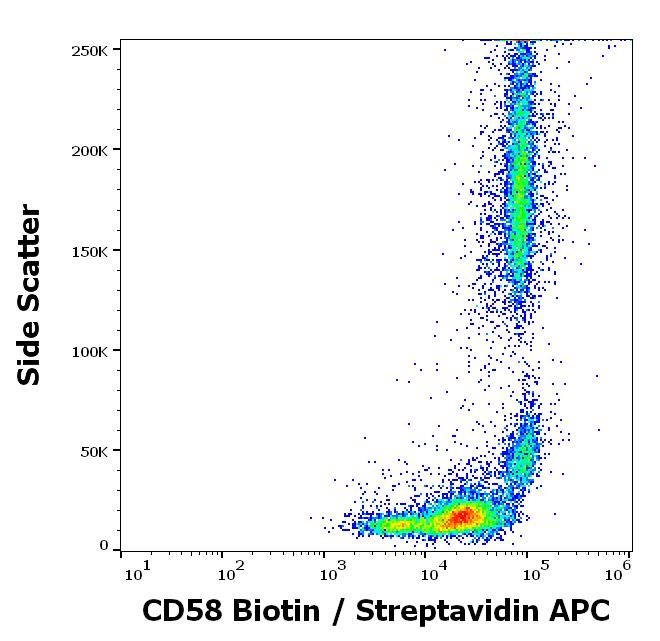 Flow cytometry surface staining pattern of human peripheral whole blood stained using anti-human CD58 (MEM-63) Biotin antibody (concentration in sample 1.67 μg/ml, Streptavidin APC).