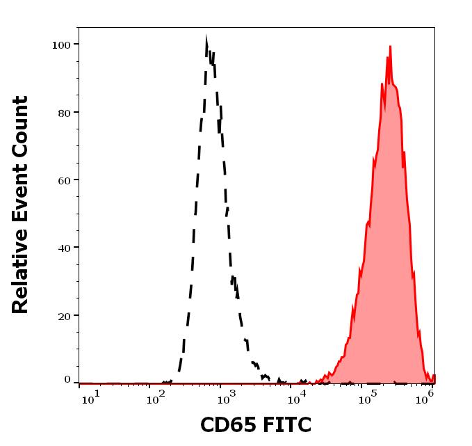 Flow cytometry surface staining pattern of human peripheral whole blood stained using anti-human CD65 (VIM8) FITC antibody (4 μl reagent / 100 μl of peripheral whole blood).