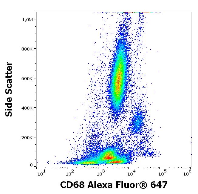 Flow cytometry intracellular staining pattern of human peripheral whole blood stained using anti-human CD68 (Y1/82A) Alexa Fluor® 647 antibody (4 μl reagent / 100 μl of peripheral whole blood).