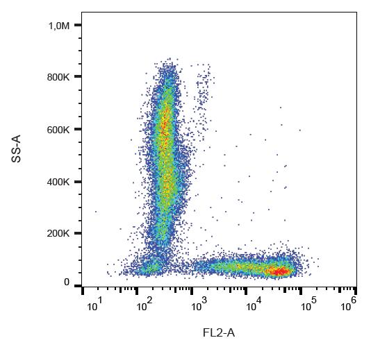 Purified antibody is conjugated with R-phycoerythrin (PE) under optimum conditions. Unconjugated antibody and free fluorochrome are removed by size-exclusion chromatography.