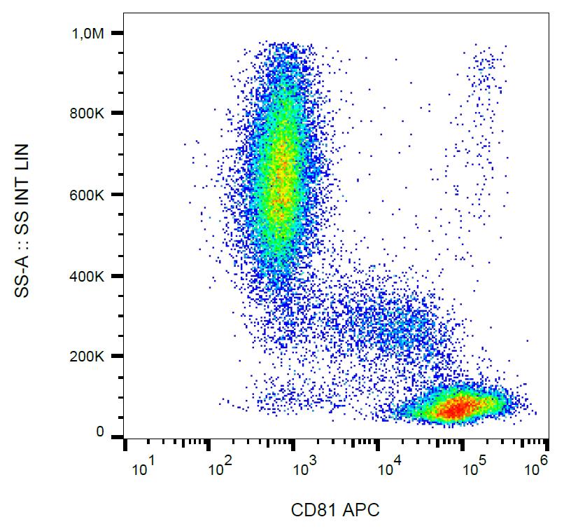 Flow cytometry analysis (surface staining) of CD81 in human peripheral blood with anti-CD81 (M38) APC.