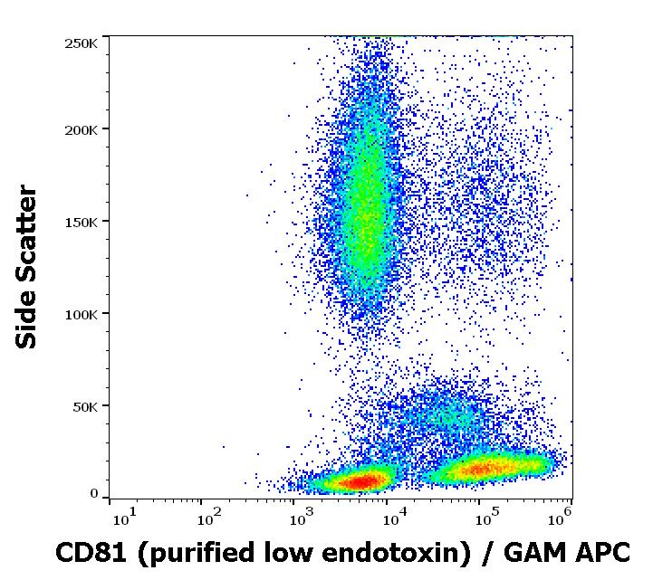 Flow cytometry surface staining pattern of human peripheral blood stained using anti-human CD81 (M38) purified antibody (low endotoxin, concentration in sample 4 μg/ml) GAM APC.