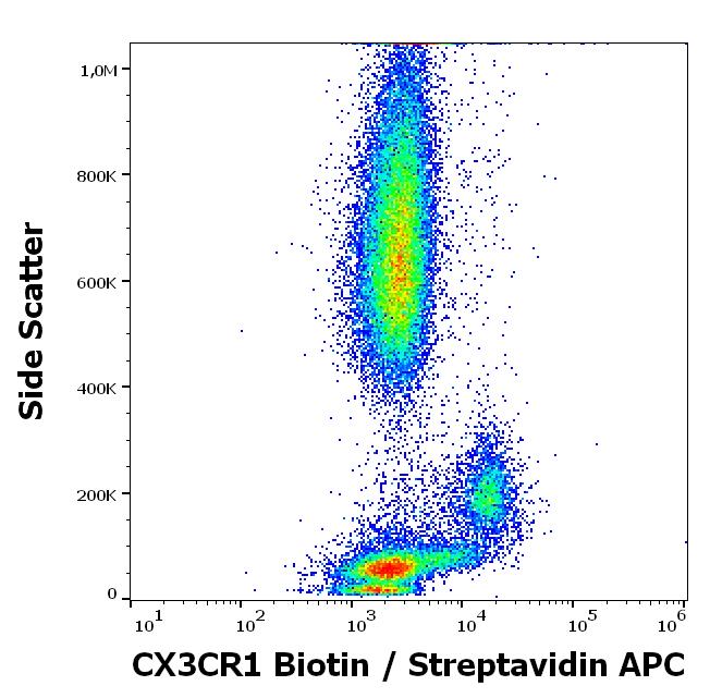 Flow cytometry surface staining pattern of human peripheral whole blood stained using anti-human CX3XR1 (2A9-1) biotin antibody (concentration in sample 5 μg/ml, Streptavidin APC).