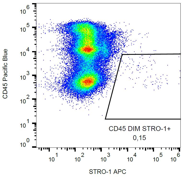 Flow cytometry analysis (surface staining) of human peripheral blood with anti-STRO-1 (STRO-1) APC.