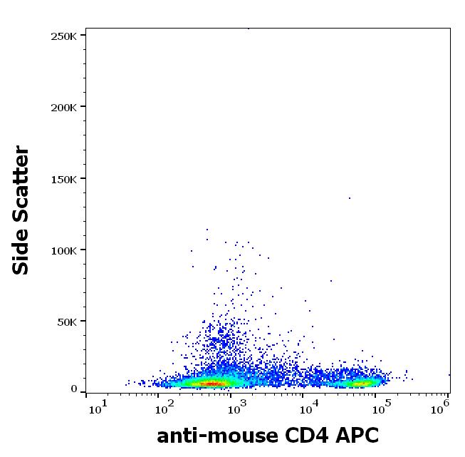 Flow cytometry surface staining pattern of murine splenocytes stained using anti-mouse CD4 (GK1.5) APC antibody (concentration in sample 1 μg/ml).