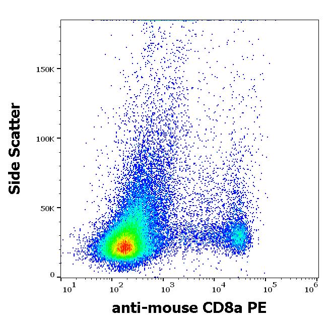 Flow cytometry surface staining pattern of murine splenocyte suspension stained using anti-mouse CD8a (53-6.7) PE (concentration in sample 1,67 μg/ml).