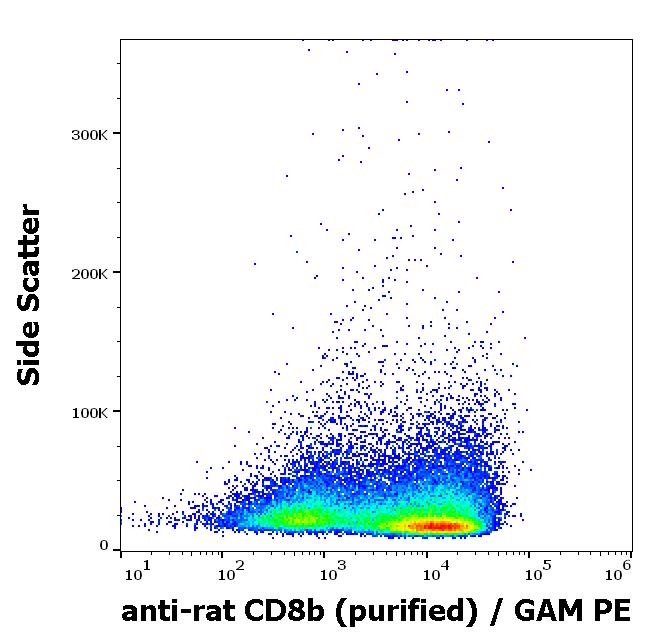 Flow cytometry surface staining pattern of rat splenocyte suspension stained using anti-rat CD8b (341) purified antibody (concentration in sample 1 μg/ml, GAM APC).