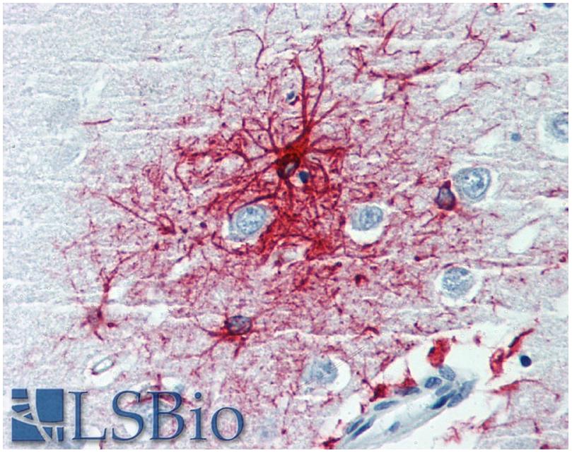 Immunohistochemistry staining of human brain cortex (paraffin-embedded sections) with anti-GFAP (clone GF-01). Commercially tested by LifeSpan BioSciences.