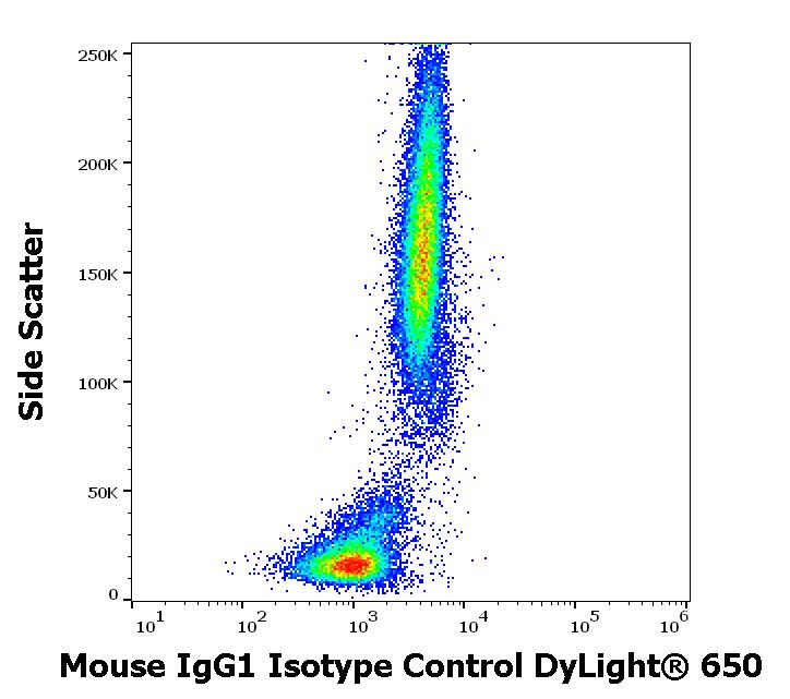 Flow cytometry surface nonspecific staining pattern of human peripheral whole blood stained using mouse IgG1 Isotype control (MOPC-21) DyLight™ 650 antibody (concentration in sample 9 μg/ml).