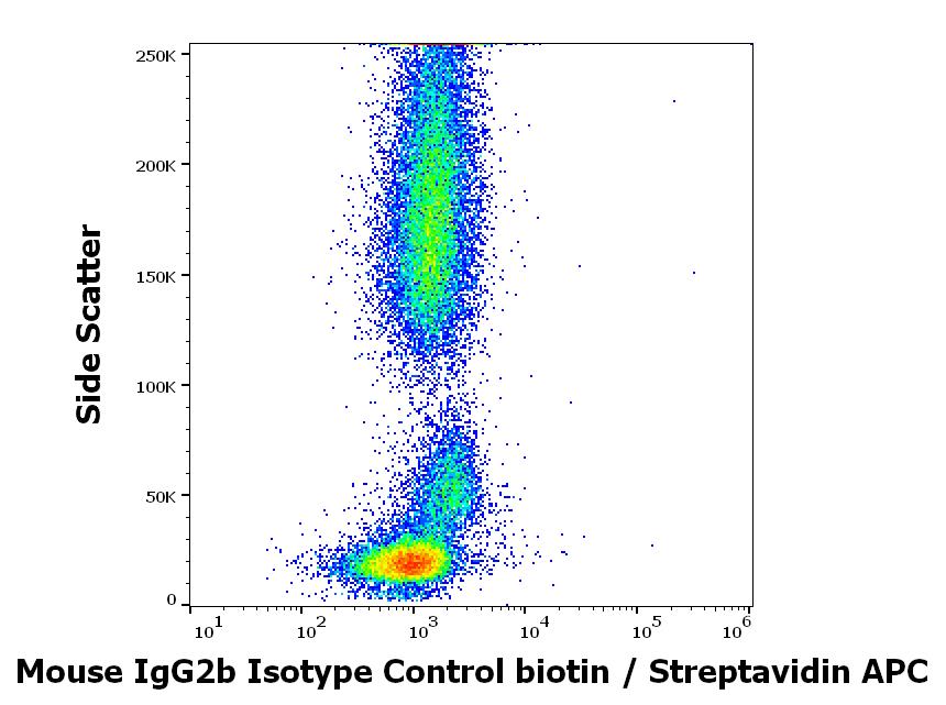 Flow cytometry surface nonspecific staining pattern of human peripheral whole blood stained using mouse IgG2b Isotype control (MPC-11) Biotin antibody (concentration in sample 9 μg/ml).