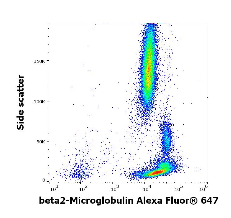 Flow cytometry surface staining pattern of human peripheral whole blood stained using anti-beta2-Microglobulin antibody (B2M-01) Alexa Fluor® 647 (concentration in sample 5 μg/ml).
