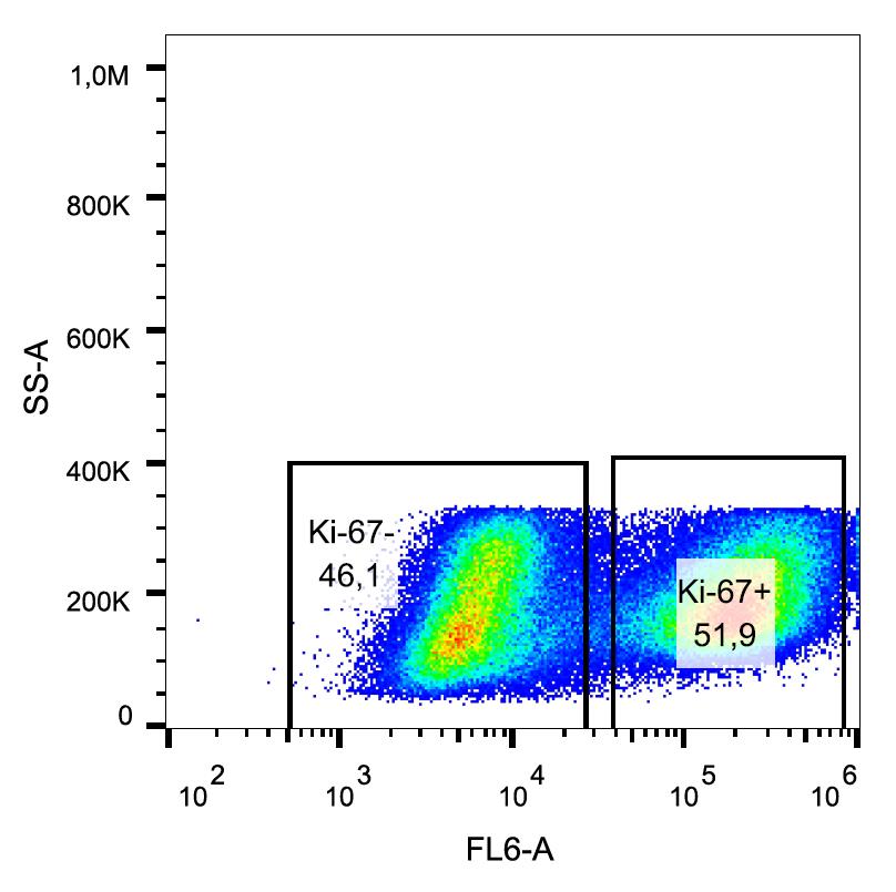 Flow cytometry analysis (intracellular staining) of PHA-stimulated (for 3 days) PBMC with anti-Ki-67 (Ki-67) Alexa Fluor 647.