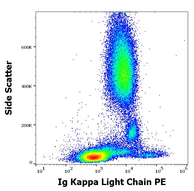 Flow cytometry surface staining pattern of human peripheral whole blood stained using anti-human Ig Kappa Light Chain (TB28-2) PE antibody (10 μl reagent / 100 μl of peripheral whole blood).