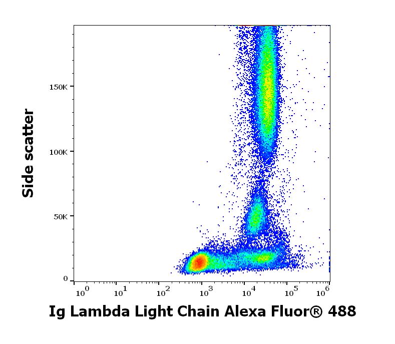 Flow cytometry surface staining pattern of human peripheral whole blood stained using anti-human Lambda Light Chain (1-155-2) Alexa Fluor® 488 antibody (4 μl reagent / 100 μl of peripheral whole blood).