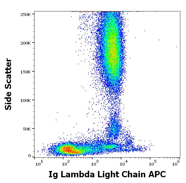 Flow cytometry surface staining pattern of human peripheral whole blood stained using anti-human Ig Lambda Light Chain (4C2) APC antibody (concentration in sample 5 μg/ml).