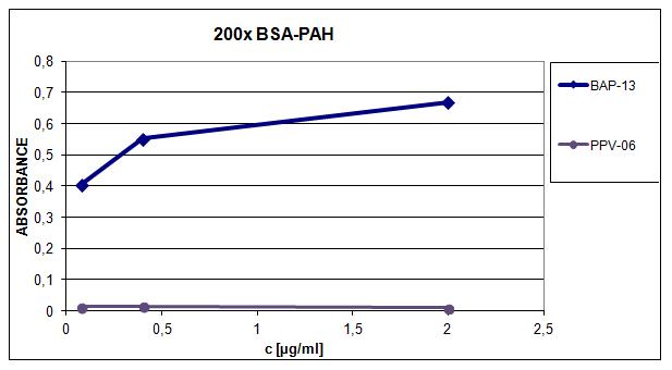 ELISA detection of benzo(a)pyrene using mouse monoclonal antibody BAP-13, compared with isotype control antibody PPV-06.